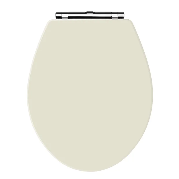 A high-quality traditional round ivory wooden toilet seat with chrome hinges from period bathroom specialists Old London, ideal for creating a period look in your bathroom. Designed for use with Old London’s collection of Richmond Toilets. Comes with non-slip buffers.